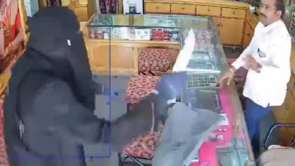 ಹೈದರಾಬಾದ್ನ ಮೆಡ್ಚಲ್ನ ಕೊಂಪಲ್ಲಿಯಲ್ಲಿರುವ ಜಗದಂಬಾ ಜ್ಯುವೆಲ್ಲರ್ಸ್ಗೆ ಬೆಳಗ್ಗೆ 11 ಗಂಟೆ ಸುಮಾರಿಗೆ ಇಬ್ಬರು ಕಳ್ಳರು ಪ್ರವೇಶಿಸಿದ್ದಾರೆ. ಗ್ರಾಹಕರಂತೆ ಪೋಸ್ ಕೊಟ್ಟು ಅಂಗಡಿ ಪ್ರವೇಶಿಸಿದರು. ಸ್ವಲ್ಪ ಸಮಯದ ನಂತರ, ಆರೋಪಿ ಬುರ್ಖಾದೊಳಗಿದ್ದ ತನ್ನ ಬ್ಯಾಗ್ನಲ್ಲಿ ಆಭರಣ ಪೆಟ್ಟಿಗೆಗಳನ್ನು ಇಡುವಂತೆ ಒತ್ತಾಯಿಸಿದನು. ಇದನ್ನು ವಿರೋಧಿಸಿ ಮಾಲೀಕರು ಸಹಾಯಕ್ಕಾಗಿ ಕೂಗಿಕೊಂಡಾಗ ಆರೋಪಿಗಳು ಮಾಲೀಕನ ಕತ್ತಿನ ಕೆಳಗೆ ಚಾಕುವಿನಿಂದ ಇರಿದಿದ್ದಾರೆ.