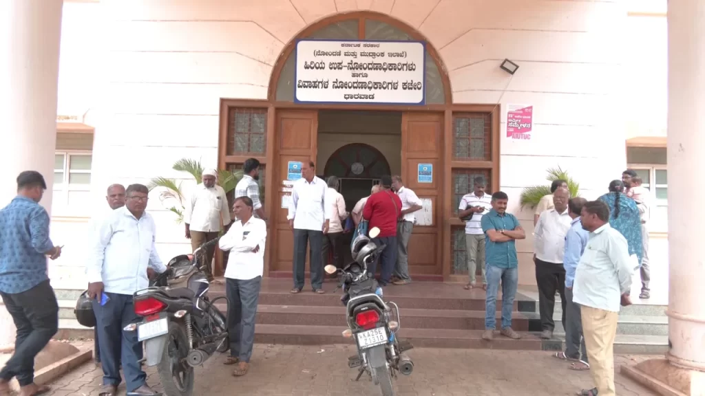 ಧಾರವಾಡ, ಜನವರಿ 18: ಧಾರವಾಡದ ಉಪ ನೋಂದಣಾಧಿಕಾರಿ ಕಚೇರಿಗೆ ನಿತ್ಯ ನೂರಾರು ಜನ ಕೆಲಸಕ್ಕೆ ಬರುತ್ತಾರೆ. ಯಾವುದೇ ನೋಂದಣಿ, ಮತ್ತಿತರೆ ದಾಖಲಾತಿ ಕೆಲಸ ಇದ್ದರೆ ಅವುಗಳೆಲ್ಲವೂ ಆನ್ಲೈನ್ ಹಾಗೂ ಕಂಪ್ಯೂಟರ್ ಆಧಾರಿತವಾಗಿಯೇ ನಡೆಯಬೇಕು. ಆದರೆ ಈಗ ಈ ಉಪನೋಂದಣಾಧಿಕಾರಿ ಕಚೇರಿ ಕೆಲಸವೇ ಸ್ಥಗಿತಗೊಂಡಿದ್ದು, ಸಾರ್ವಜನಿಕರು ಪರದಾಡುವಂತಾಗಿದೆ. ಇದಕ್ಕೆ ಕಾರಣ ವಿದ್ಯುತ್ ಸಂಪರ್ಕ ಕಡಿತ. ಸುಮಾರು ಆರು ತಿಂಗಳಿನಿಂದ ಲಕ್ಷಾಂತರ ರೂಪಾಯಿ ವಿದ್ಯುತ್ ಬಿಲ್ ಬಾಕಿ ಇರಿಸಿಕೊಂಡಿರುವುದರಿಂದ ಹೆಸ್ಕಾಂ ಸಿಬ್ಬಂದಿ ಉಪ ನೋಂದಣಾಧಿಕಾರಿ ಕಚೇರಿಯಲ್ಲಿನ ವಿದ್ಯುತ್ ಪ್ಯೂಸ್ ಕಿತ್ತುಕೊಂಡು ಹೋಗಿದ್ದಾರೆ. ಇತ್ತ ಕಚೇರಿಯಲ್ಲಿರುವ ಜನರೇಟರ್ ಸಹ ಕೆಲಸ ಮಾಡುತ್ತಿಲ್ಲ. ಹೀಗಾಗಿ ಜನ ಕಾಯುತ್ತಾ ನಿಲ್ಲುವಂತಾಗಿದ್ದು, ಯಾವುದೇ ಕೆಲಸಗಳು ನಡೆಯುತ್ತಿಲ್ಲ.