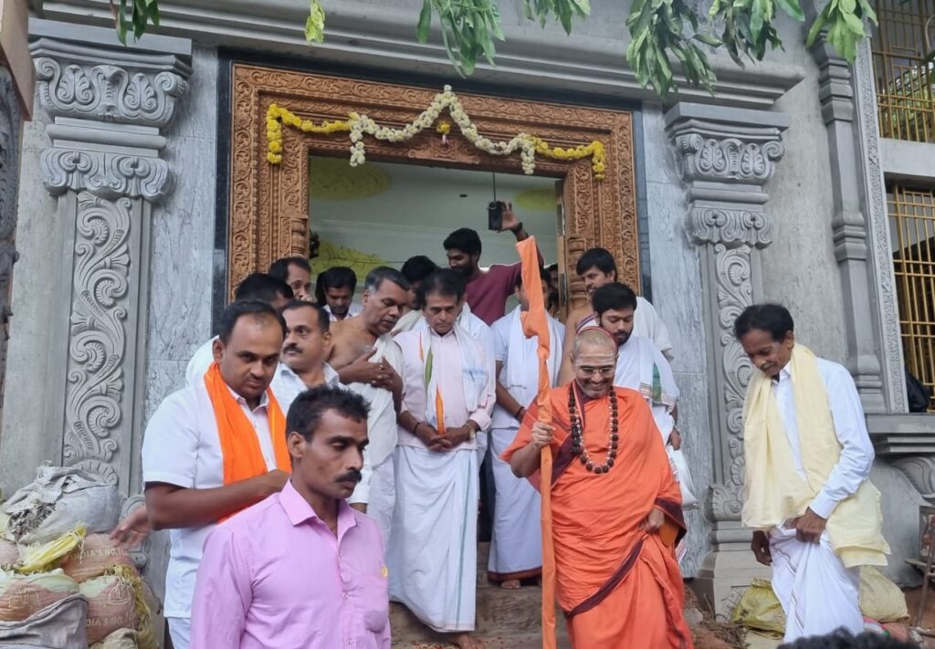 ಶ್ರೀಗಳು ಸಿದ್ದಾಪುರ ದೈವಜ್ಞ ಬ್ರಾಹ್ಮಣ ಸಮಾಜದ ಶ್ರೀ ಲಕ್ಷ್ಮಿ ನಾರಾಯಣ ದೇವಾಲಯಕ್ಕೆ ಭೇಟಿ ನೀಡಿ ನವೀಕರಣ ಗೊಳ್ಳುತ್ತಿರುವ ಕಟ್ಟಡದ ಕಾಮಗಾರಿಯನ್ನು ವೀಕ್ಷಿಸಿ ಸಂತಸ ವ್ಯಕ್ತಪಡಿಸಿದ ಶ್ರೀಗಳು ಈ ದೇವಾಲಯಕ್ಕೆ ಭಗವಾನ್ ಶ್ರೀ ಸತ್ಯ ಸಾಯಿ ಬಾಬಾ ರವರ ಪೂರ್ಣ ಅನುಗ್ರಹ ಇದೆ.ಸಮಾಜದ ಎಲ್ಲರ ಸಹಕಾರದಿಂದ ಈ ಕಟ್ಟಡದ ಕಾಮಗಾರಿಯು ಪೂರ್ಣಗೊಳ್ಳಲಿ. ಒಳಗೆ ಕುಳಿತಿರುವ ಶ್ರೀ ಲಕ್ಷ್ಮೀನಾರಾಯಣ ದೇವರು ಈ ಕೆಲಸವನ್ನು ಮಾಡಿಸಿಕೊಳ್ಳುತ್ತಾರೆ ಹಾಗೂ ಶ್ರೀ ಜಾನೇಶ್ವರೀ ದೇವಿಯ ಸಂಪೂರ್ಣ ಆಶೀರ್ವಾದ ಇದೆ ಎಂದು ನುಡಿದರು. ದೈವಜ್ಞ ಬ್ರಾಹ್ಮಣ ಸಮಾಜದ ಅಧ್ಯಕ್ಷ ಶಾಂತರಾಮ್ ವಿ. ಶೇಟ್ ಹಾಗೂ ಮಂಡಳಿಯ ಎಲ್ಲಾ ಪದಾಧಿಕಾರಿಗಳು ಶ್ರೀಗಳಿಗೆ ಫಲ ತಾಂಬೂಲ ನೀಡಿ ಸತ್ಕರಿಸಲಾಯಿತು. ಈ ಸಂದರ್ಭದಲ್ಲಿ ಸಮಾಜದ ಹಿರಿಯರು,ಯುವಕ ಸಂಘದ ಪದಾಧಿಕಾರಿಗಳು,ಶ್ರೀ ರಾಜರಾಜೇಶ್ವರಿ ಮಹಿಳಾ ಮಂಡಳಿಯ ಸದಸ್ಯರು ಹಾಗೂ ಭಕ್ತಾದಿಗಳು ಉಪಸ್ಥಿತರಿದ್ದರು.ಎಲ್ಲ ಭಕ್ತಾದಿಗಳಿಗೂ ಶ್ರೀಗಳು ಮಂತ್ರಾಕ್ಷತೆ ಅನುಗ್ರಹಿಸಿ ಆಶೀರ್ವದಿಸಿದರು. ರಮೇಶ್ ಕೆ.ರಾಯಕರ ಸ್ವಾಗತಿಸಿದರು.
