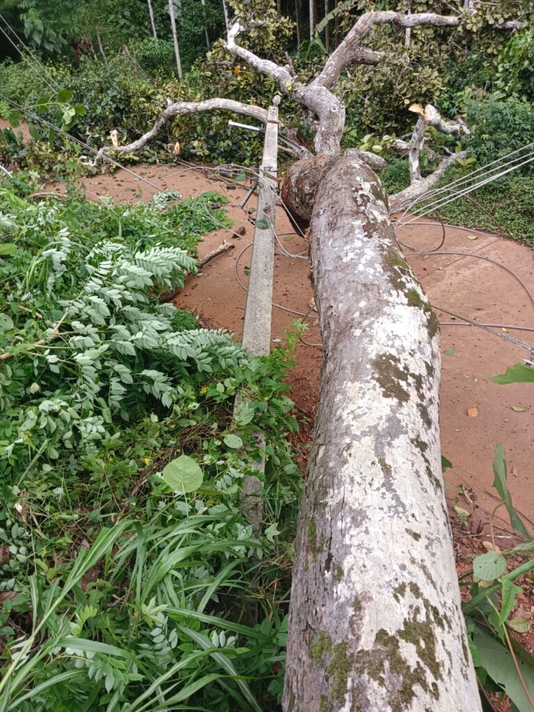 ಮರ ಬಿದ್ದ ಕಾರಣ ಸುಮಾರು 6ಕ್ಕೂ ಹೆಚ್ಚು ವಿದ್ಯುತ್ ಕಂಬಗಳಿಗೆ ಹಾನಿಯಾಗಿದ್ದು, ಕಡಬ ನೆಲ್ಯಾಡಿ ಭಾಗದಲ್ಲಿ ಹಲವು ಗಂಟೆಗಳ ಕಾಲ ವಿದ್ಯುತ್ ಸಂಪರ್ಕ ಕಡಿತಗೊಂಡಿತ್ತು. ಮೆಸ್ಕಾಂ ಇಲಾಖೆಯ ಸಿಬ್ಬಂದಿ ಸ್ಥಳಕ್ಕೆ ಆಗಮಿಸಿ ದುರಸ್ತಿ ಕಾರ್ಯ ಕೈಗೊಂಡಿದ್ದಾರೆ. ಅಲ್ಲದೆ, ಇದರಿಂದ ಆಗಿರುವ ನಷ್ಟವನ್ನು ಆರೋಪಿಗಳಿಂದಲೇ ಭರಿಸುವ ಬಗ್ಗೆ ಮೆಸ್ಕಾಂ ಇಲಾಖೆ ಕ್ರಮ ಕೈಗೊಳ್ಳಲಿದೆ.