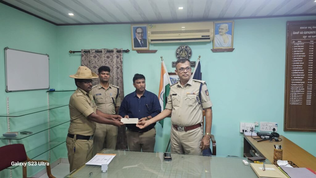ಭಟ್ಕಳ: ಹಾಡುವಳ್ಳಿಯಲ್ಲಿ ನಡೆದ ಒಂದೇ ಕುಟುಂಬದ ನಾಲ್ವರ ಕೊಲೆ ಪ್ರಕರಣಕ್ಕೆ ಸಂಬಂಧ ಪಟ್ಟಂತೆ ತನಿಖೆಯಲ್ಲಿ ಸಹಾಯ ಮಾಡಿದ ಮೂವರು ಸಿಬ್ಬಂದಿಗಳಿಗೆ ಜಿಲ್ಲಾ ಪೊಲೀಸ್ ವರಿಷ್ಠಾಧಿಕಾರಿ ಎಂ ನಾರಾಯಣ ಪ್ರಶಂಸನಾ ಪತ್ರ ಮತ್ತು ನಗದು ಬಹುಮಾನ ನೀಡಿ ಅಭಿನಂದಿಸಿದರು.