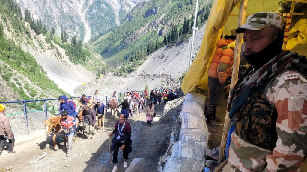 ಅಧಿಕೃತವಾಗಿ ನಾಳೆಯಿಂದ ಆರಂಭವಾಗಲಿದ್ದು, ಇಂದು ಜಮ್ಮುವಿನ ಭಗವತಿ ನಗರದಲ್ಲಿ 5,880 ಭಕ್ತರಿದ್ದ ಮೊದಲ ಶಿಬಿರಕ್ಕೆ ಧ್ವಜ ಹಾರಿಸುವ ಮೂಲಕ ಚಾಲನೆ ನೀಡಲಾಯಿತು. ಜು.3ರಂದು ಬಾಲ್ಟಾಲ್ ಮತ್ತು ಪಹಲ್ಗಾಮ್ ಮಾರ್ಗಗಳಿಂದ ಯಾತ್ರೆ ಅಧಿಕೃತವಾಗಿ ಪ್ರಾರಂಭವಾಗಲಿದ್ದು, ಆ.7ರವರೆಗೆ 38 ದಿನಗಳ ಕಾಲ ಅಮರನಾಥ ಯಾತ್ರೆ ನಡೆಯಲಿದೆ. ಈ ಹಿನ್ನೆಲೆ ಕಥುವಾದ ಲಖನ್ಪುರದಿಂದ ಪವಿತ್ರ ಗುಹೆಯವರೆಗೆ ಸುಮಾರು 1 ಲಕ್ಷ ಭದ್ರತಾ ಸಿಬ್ಬಂದಿಯನ್ನು ನಿಯೋಜಿಸಲಾಗಿದೆ