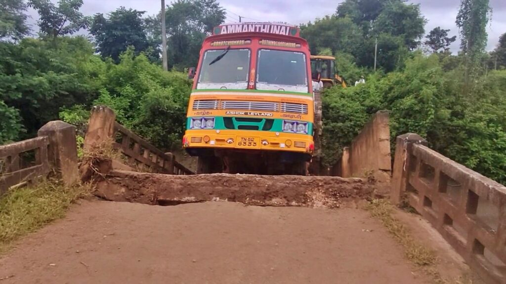 ಇಟ್ನ ಗ್ರಾಮದಿಂದ ತಮಿಳುನಾಡಿಗೆ ಭತ್ತ ತುಂಬಿಕೊಂಡು ಹೋಗುತ್ತಿದ್ದ (ಟಿಎನ್.52, 8333) ಲಾರಿ ಅಪಘಾತಕ್ಕೀಡಾಗಿದೆ. ಘಟನೆಯಲ್ಲಿ ಯಾವುದೇ ಪ್ರಾಣಾಪಾಯ ಸಂಭವಿಸಿಲ್ಲ. ಸೇತುವೆ ದುರಸ್ತಿಪಡಿಸುವಂತೆ ಅಧಿಕಾರಿಗಳಿಗೆ ಸಾಕಷ್ಟು ಬಾರಿ ಮನವಿ ಸಲ್ಲಿಸಿದರೂ ಯಾವುದೇ ಪ್ರಯೋಜನವಾಗಿಲ್ಲ ಎಂದು ಸ್ಥಳೀಯರು ದೂರಿದರು.