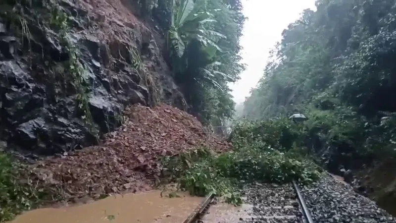 ಹಾಸನ: ಪಶ್ಚಿಮಘಟ್ಟ ಭಾಗದಲ್ಲಿ ಭಾರೀ ಮಳೆಯಿಂದಾಗಿ ಸಕಲೇಶಪುರ ತಾಲ್ಲೂಕಿನ ಎಡಕುಮಾರಿ ಬಳಿ ರೈಲ್ವೇ ಹಳಿ ಮೇಲೆ ಮಣ್ಣು ಕುಸಿತಗೊಂಡಿದೆ. ಇದರಿಂದ ಬೆಂಗಳೂರು-ಮಂಗಳೂರು ರೈಲ್ವೆ ಮಾರ್ಗವನ್ನು ತಾತ್ಕಾಲಿಕ ಬಂದ್ ಮಾಡಲಾಗಿದ್ದು, ರಾತ್ರಿಯಿಡೀ ಮಣ್ಣು ತೆರವುಗೊಳಿಸುವ ಕಾರ್ಯ ನಡೆದಿದೆ.