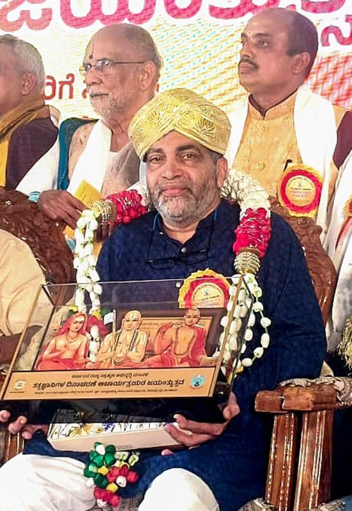ಹೊನ್ನಾವರ ನ. ೧೦: ಕರ್ನಾಟಕ ರಾಜ್ಯ ಬ್ರಾಹ್ಮಣ ಅಭಿವೃದ್ಧಿ ಮಂಡಳಿ ಆಯೋಜಿಸಿದ್ದ ತತ್ವ ಜ್ಞಾನಿಗಳ ದಿನಾಚರಣೆ ಪ್ರಯುಕ್ತ ಆಚಾರ್ಯತ್ರಯರ ಜಯಂತ್ಯೋತ್ಸವದಲ್ಲಿ ಬೆಂಗಳೂರಿನಲ್ಲಿ ನಡೆದ ಸಮಾರಂಭದಲ್ಲಿ ವಿವಿಧ ಕ್ಷೇತ್ರದ ಸಾಧಕರನ್ನು ಗೌರವಿಸಲಾಯಿತು. ಸಹಕಾರ ರತ್ನ ಪುರಸ್ಕೃತ ಹೊನ್ನಾವರ ಅರ್ಬನ್ ಬ್ಯಾಂಕ್ ಅಧ್ಯಕ್ಷ ರಾಘವ ವಿಷ್ಣು ಬಾಳೇರಿ ಇವರನ್ನು ಸಹಕಾರಿ ಕ್ಷೇತ್ರದಲ್ಲಿ ಮಾಡಿದ ಸಾಧನೆಗಾಗಿ ಸನ್ಮಾನಿಸಲಾಯಿತು.