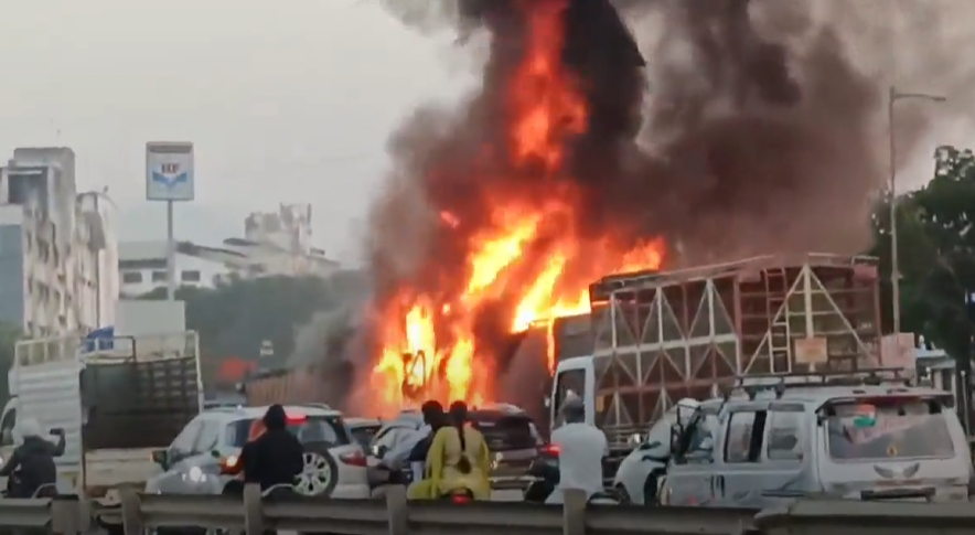 ಗುದ್ದಾಟದ ಹೊಡೆತಕ್ಕೆ 2–3 ವಾಹನಗಳಿಗೆ ಬೆಂಕಿ ಹೊತ್ತಿಕೊಂಡಿದ್ದು, ಅಗ್ನಿಶಾಮಕ ದಳವು ತಕ್ಷಣ ಸ್ಥಳಕ್ಕೆ ಧಾವಿಸಿ ಅಗ್ನಿ ನಂದಿಸುವ ಕಾರ್ಯ ನಡೆಸುತ್ತಿದೆ. ಘಟನೆ ಕುರಿತು ಮಾಹಿತಿ ನೀಡಿರುವ ಡಿಸಿಪಿ ಸಂಭಾಜಿ ಕದಮ್, ಟ್ರಕ್ ನಿಯಂತ್ರಣ ತಪ್ಪಿದ ಪರಿಣಾಮ ಅಪಘಾತಕ್ಕೆ ಕಾರಣವಾಗಿದೆ ಎಂದು ಹೇಳಿದ್ದಾರೆ.