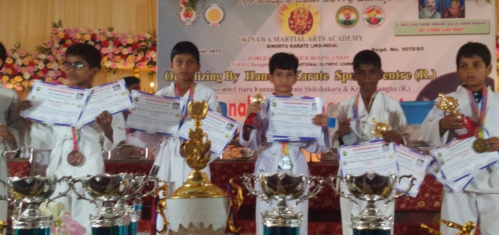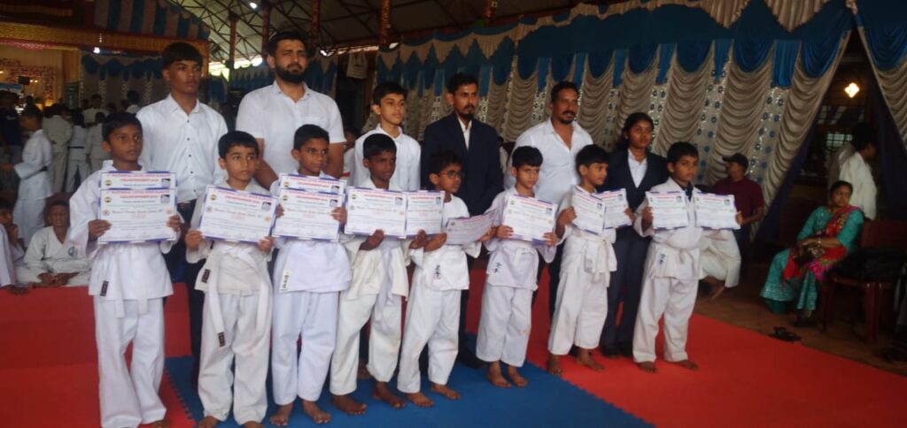 ಹೊನ್ನಾವರ: ಹೊನ್ನಾವರದ ಮೂಡಗಣಪತಿ ಸಭಾಭವನದಲ್ಲಿ ವಿಶ್ವ ಕರಾಟೆ ಮತ್ತು ಕಿಕ್ ಬಾಕ್ಸಿಂಗ್ ಯುನಿಯನ್ ತಫಿಸಾ ಅನಮೋದಿತ ಅಂತರರಾಷ್ಟ್ರೀಯ ಒಲಂಪಿಕ್ ಸಮತಿ, ಹಂದೇಸ್ ಕರಾಟೆ ಸ್ಪೋರ್ಟ್ಸ್ ಸೆಂಟರ (ರಿ)ಸಂಘಟಿತ, ಉತ್ತರ ಕನ್ನಡ ಕರಾಟೆ ಶಿಕ್ಷಕರ ಕ್ರೀಡಾ ಸಂಘದ ಸಂಯುಕ್ತಾಶ್ರಯದಲ್ಲಿ ನಡೆದ ಮೊದಲ ರಾಷ್ಟ್ರೀಯ ಮಟ್ಟದ ಓಪನ್ ಕರಾಟೆ ಚಾಂಪಿಯನ್ ಶಿಪ್ ನಲ್ಲಿ ಹೊನ್ನಾವರದ ಕರಾಟೆ ತಂಡದ ವಿದ್ಯಾರ್ಥಿಗಳು ಅಭೂತಪೂರ್ವ ಸಾಧನೆ ಗೈದಿದ್ದಾರೆ..
