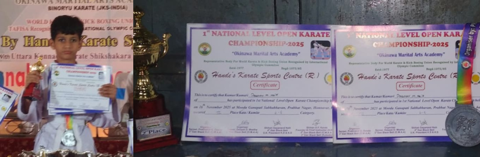 ಪ್ರಣವ ಮೋಹನ ನಾಯ್ಕ ಹೊನ್ನಾವರ ಕಟ ದ್ವೀತಿಯ ಕುಮಿಟೆ ದ್ವೀತಿಯ, 6-8 ವರ್ಷದ ವಿಭಾಗದ ಸಾಧನೆ ಗೈದ ವಿದ್ಯಾರ್ಥಿ ಪ್ರಭಾಕರ ಗೌಡ ಅವರಿಂದ ಹೊನ್ನಾವರದ ಮೂಡಗಣಪತಿ ಸಭಾಭವನದಲ್ಲಿ ತರಬೇತಿ ಪಡೆಯುತ್ತಿದ್ದರು. ವಿದ್ಯಾರ್ಥಿಯ ಈ ಸಾಧನೆಗೆ ತರಬೇತುದಾರರು, ಪೋಷಕರು ಅಭಿನಂದನೆ ಸಲ್ಲಿಸಿದ್ದಾರೆ….