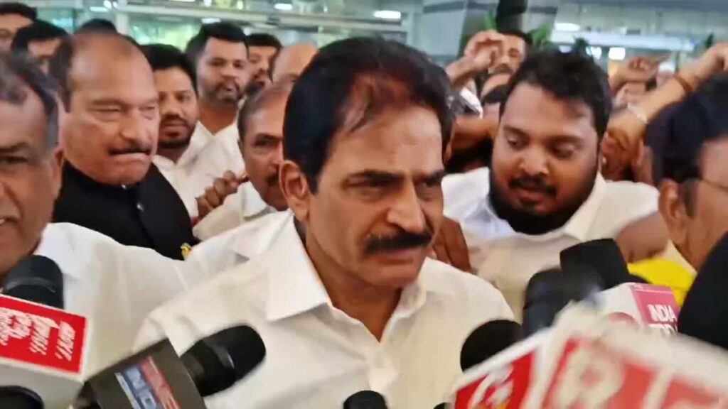 ಮಂಗಳೂರು: ಎಐಸಿಸಿ ಪ್ರಧಾನ ಕಾರ್ಯದರ್ಶಿ ಕೆ.ಸಿ.ವೇಣುಗೋಪಾಲ್ ಅವರು ಇಂದು ಮಂಗಳೂರು ಅಂತಾರಾಷ್ಟ್ರೀಯ ವಿಮಾನ ನಿಲ್ದಾಣಕ್ಕೆ ಆಗಮಿಸಿದ್ದು, ಈ ಸಂದರ್ಭದಲ್ಲಿ ಡಿ.ಕೆ.ಶಿವಕುಮಾರ್ ಪರ ಘೋಷಣೆ ಕೇಳಿಬಂತು.