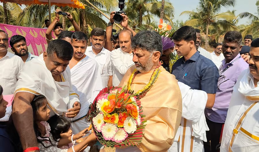 ಕಾರವಾರ ಡಿ 19: ಉಪಮುಖ್ಯಮಂತ್ರಿ ಡಿ.ಕೆ.ಶಿವಕುಮಾರ್ ಅಂಕೋಲಾ ತಾಲ್ಲೂಕಿನ ಆಂದ್ರೆ ಗ್ರಾಮದ ಜಗದೀಶ್ವರಿ ಅಮ್ಮನವರ ದೇವಸ್ಥಾನಕ್ಕೆ ಶುಕ್ರವಾರ ಭೇಟಿ ನೀಡಿದರು. ಬೆಳಿಗ್ಗೆ 9 ಗಂಟೆಗೆ ದೇವಾಲಯಕ್ಕೆ ಭೇಟಿ ನೀಡುವ ಕಾರ್ಯಕ್ರಮ ನಿಗದಿಯಾಗಿತ್ತು. ಆದರೆ, ನಾಲ್ಕು ತಾಸು ಬಿಟ್ಟು ದೇವಾಲಯಕ್ಕೆ ಶಿವಕುಮಾರ್ ಬಂದರು.