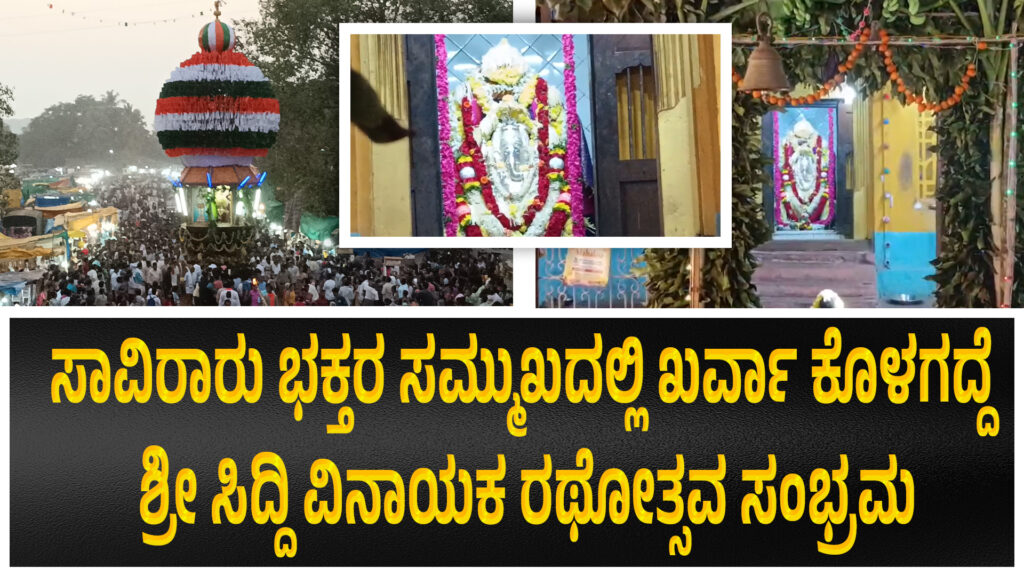 ಹೊನ್ನಾವರ: ತಾಲೂಕಿನ ಇತಿಹಾಸ ಪ್ರಸಿದ್ದ ಶಕ್ತಿ ಕ್ಷೇತ್ರಗಳಲ್ಲೊಂದಾದ ಖರ್ವಾ ಗ್ರಾಮದ ಕೊಳಗದ್ದೆ ಶ್ರೀ ಸಿದ್ದಿ ವಿನಾಯಕ ದೇವಾಲಯದ ಮಹಾಸ್ಯಂದನ ರಥೋತ್ಸವವು ವಿವಿಧ ಧಾರ್ಮಿಕ ಕಾರ್ಯಕ್ರಮಗಳೊಂದಿಗೆ ಸಾವಿರಾರು ಸಂಖ್ಯೆಯ ಭಕ್ತಸಾಗರದ ಸಮ್ಮುಖದಲ್ಲಿ ರವಿವಾರ ವಿಜ್ರಂಭಣೆಯಿಂದ ಸಂಪನ್ನವಾಯಿತು.