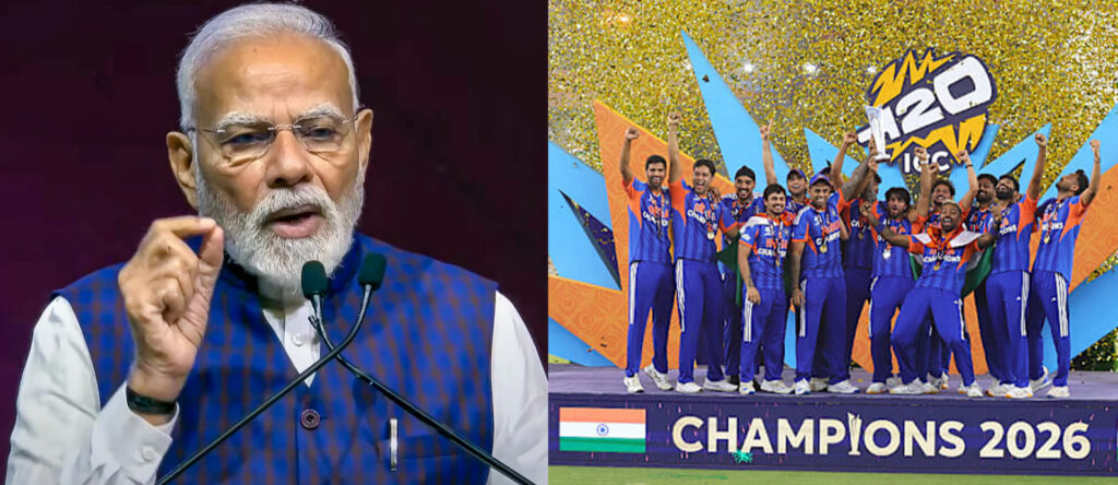ಟಿ20 ವಿಶ್ವಕಪ್ನಲ್ಲಿ ಚಾಂಪಿಯನ್ ಪಟ್ಟ ಅಲಂಕರಿಸಿರುವ ಟೀಮ್ ಇಂಡಿಯಾಗೆ ಪ್ರಧಾನಿ ನರೇಂದ್ರ ಮೋದಿ ಅಭಿನಂದನೆ ಸಲ್ಲಿಸಿದ್ದಾರೆ. ಅಹಮದಾಬಾದ್ನ ನರೇಂದ್ರ ಮೋದಿ ಸ್ಟೇಡಿಯಂನಲ್ಲಿ ನಡೆದ ಟಿ20 ವಿಶ್ವಕಪ್ನ ಫೈನಲ್ ಪಂದ್ಯದಲ್ಲಿ ಭಾರತ ಮತ್ತು ನ್ಯೂಝಿಲೆಂಡ್ ಮುಖಾಮುಖಿಯಾಗಿತ್ತು.