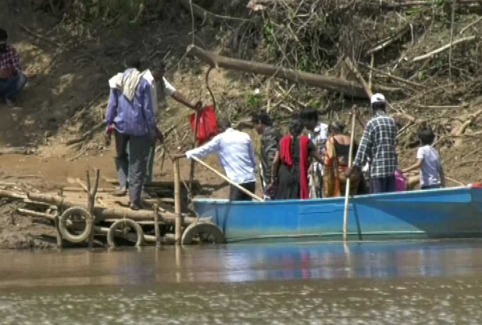 ಸೇತುವೆ ಮೇಲೆ ಹರಿಯುವ ನದಿ ನೀರಿನಲ್ಲೇ ಸೇತುವೆ ದಾಟುವ ಗ್ರಾಮಸ್ಥರು.!